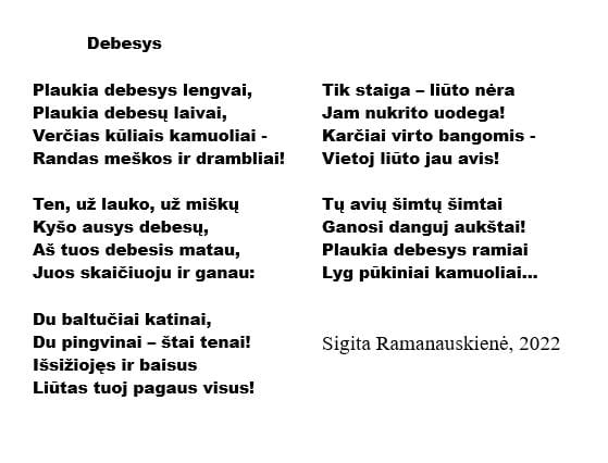 Debesys drambliai…Sigita Ramanauskienė2024-05-16Kalbos ugdymas, Aplinkos pažinimas, Eilėraščiai, Veiklos laukeBent kartais pasidairykime po dangų… Previous Įrašas Gaminame ir leidžiame muilo burbulus! Next Įrašas Gegužės 20-oji - pasaulinė bičių diena Leave a ReplyCancel ReplyEl. pašto adresas nebus skelbiamas. Būtini laukeliai pažymėti * Name * Email * Website Add Comment *Save my name, email, and website in this browser for the next time I comment.Įrašyti komentarą