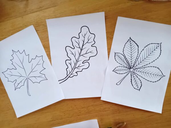 Spalvinimo (kitokio dekoravimo) lapai – dideli klevo, ąžuolo, kaštono lapai (po vieną per visą lapą). Juos galima spalvinti, dekoruoti ar naudoti darbeliams.